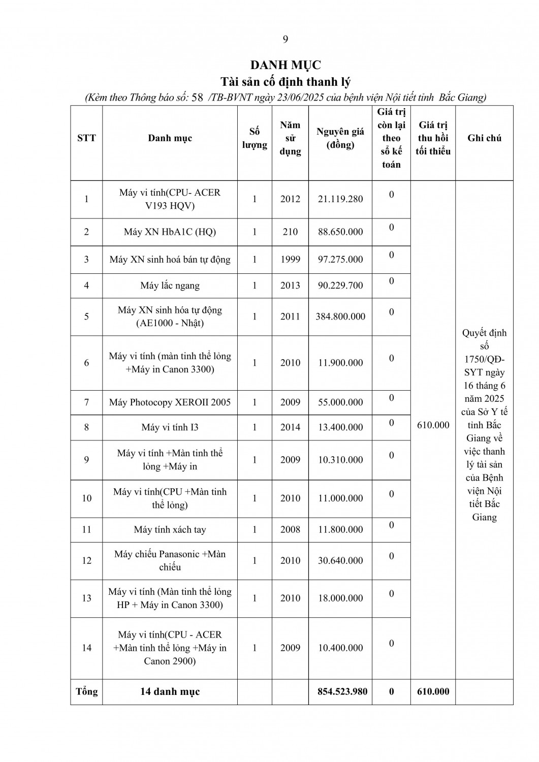 Mời báo giá vật tư xét nghiệm, hóa chất phục vụ khám chữa bệnh năm 2025- 2026 của Bệnh viện Nội tiết Bắc Ninh