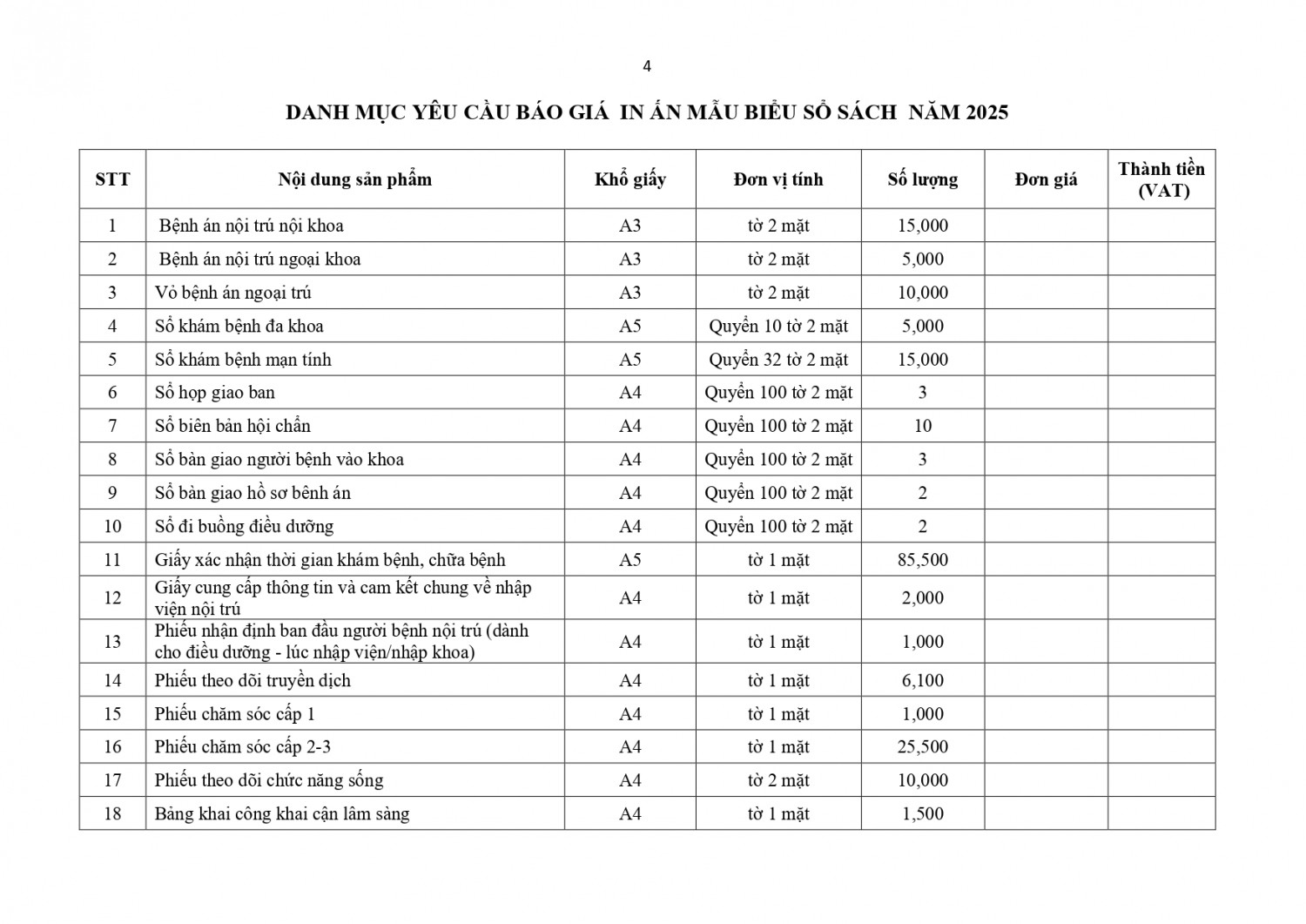 Mời báo giá thuốc tại Bệnh viện Nội tiết Bắc Ninh