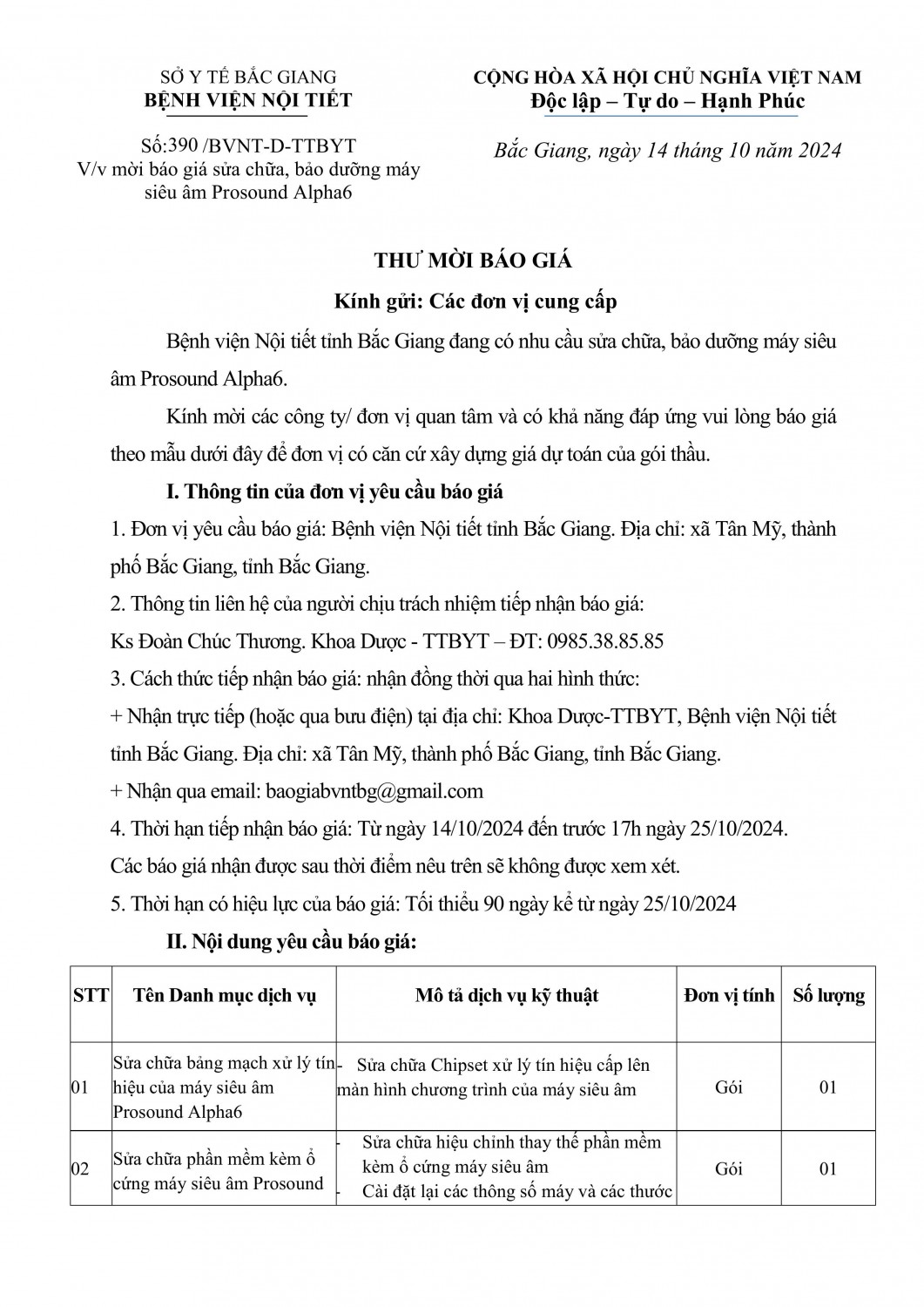 Mời báo giá tư vấn dự toán mua thuốc của Bệnh viện Nội tiết Bắc Ninh