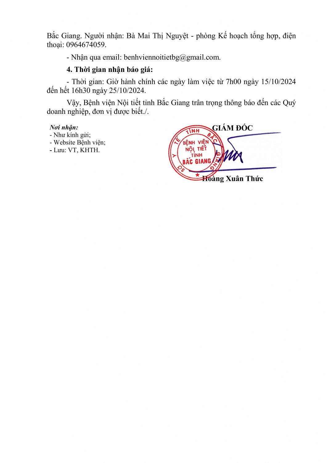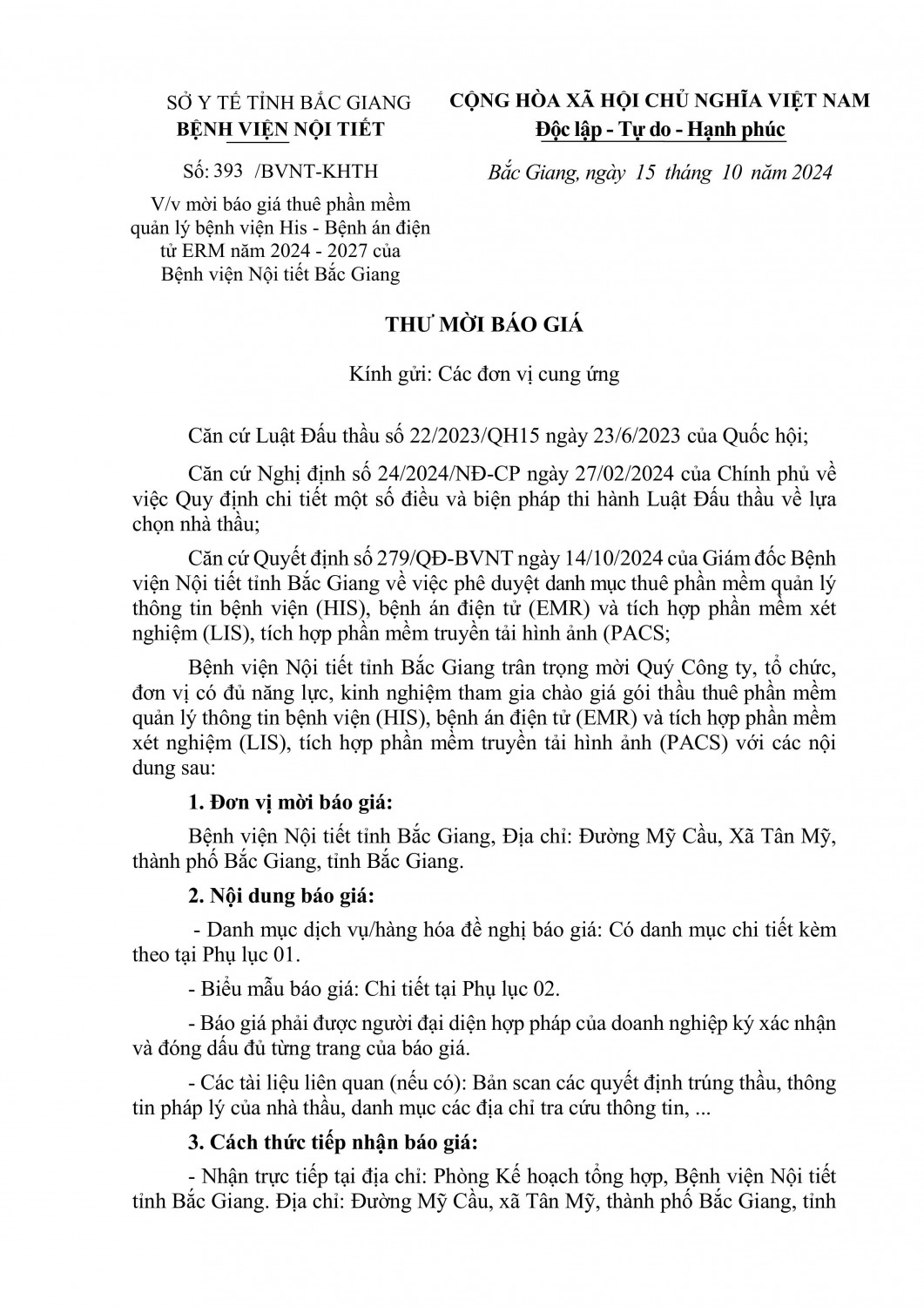 Mời báo giá tư vấn dự toán mua thuốc của Bệnh viện Nội tiết Bắc Ninh