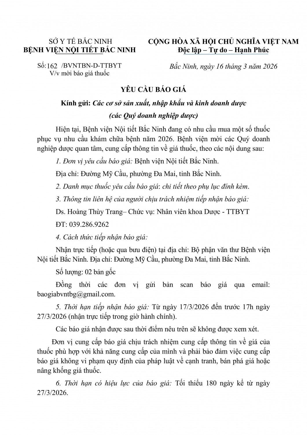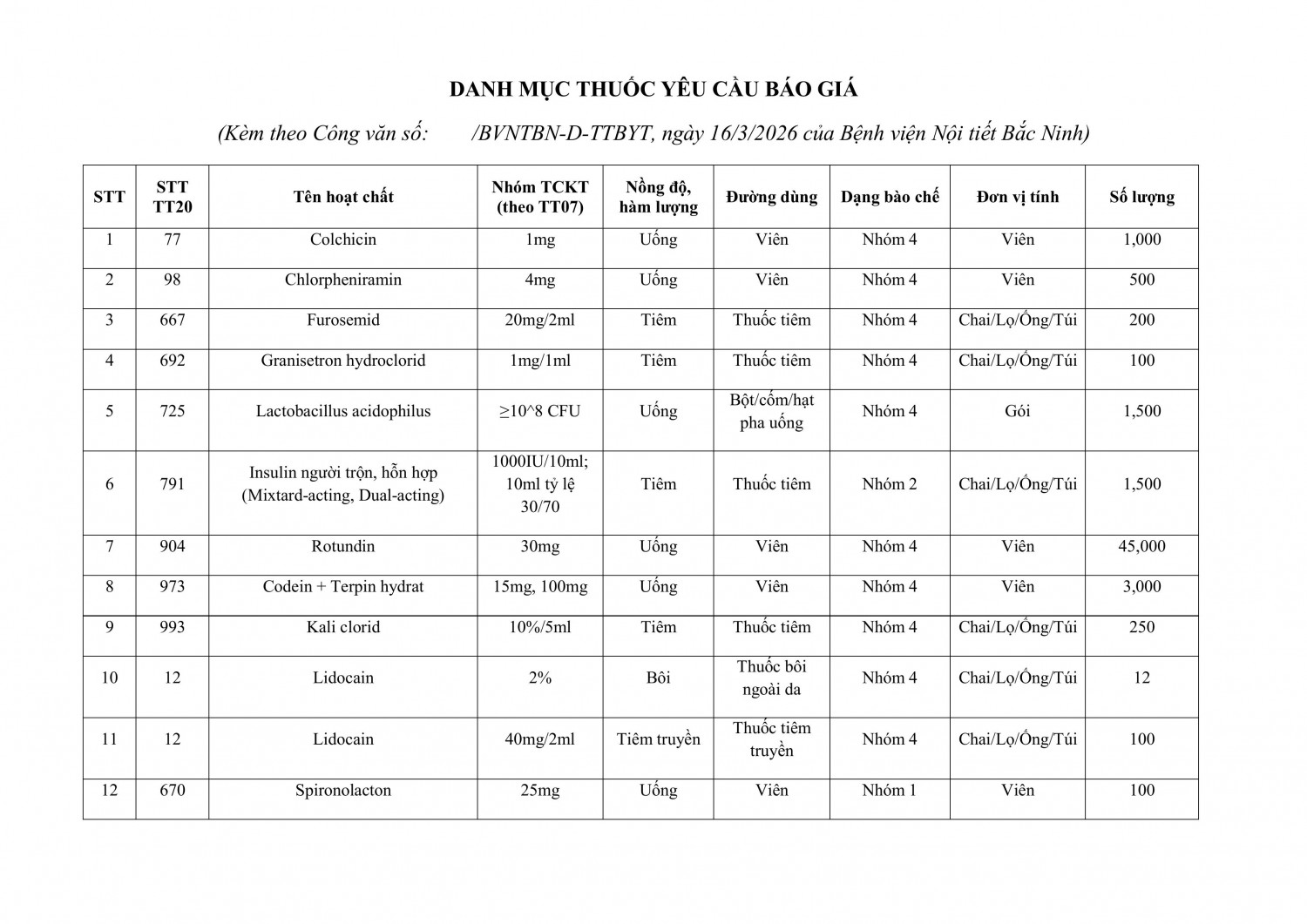 Mời báo giá thuốc