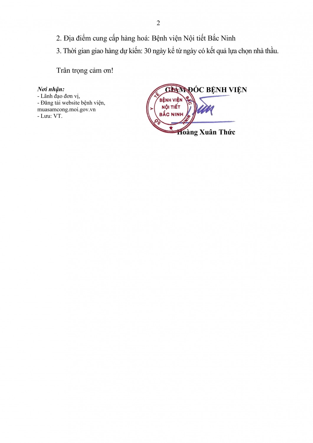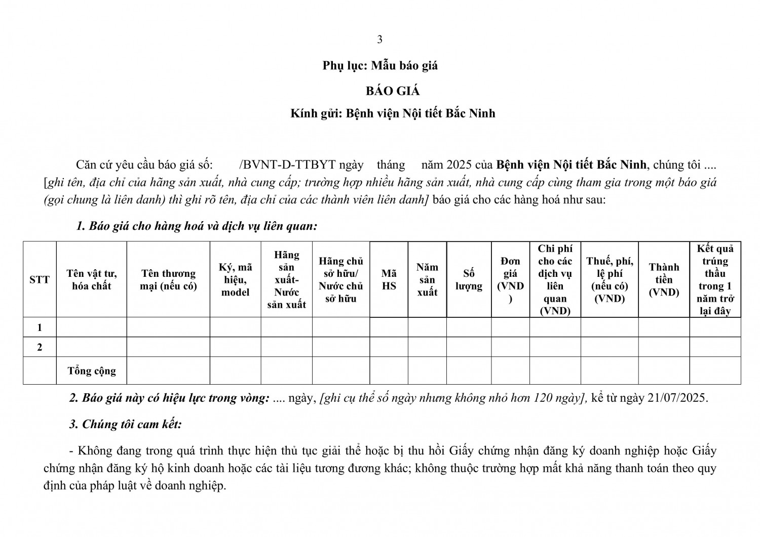 Mời báo giá tư vấn dự toán mua thuốc của Bệnh viện Nội tiết Bắc Ninh