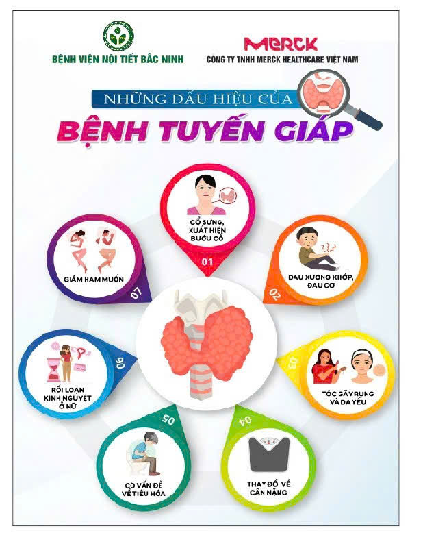 Tuyến giáp: Là một tuyến nội tiết nhỏ nằm ở vùng cổ, có hình cánh bướm, giữ vai trò quan trọng trong việc điều hòa hầu hết hoạt động của cơ thể như: Chuyển hóa năng lượng, tim mạch, nhiệt độ, hệ thần kinh và sinh sản... Tuy nhiên, tuyến giáp lại là cơ quan rất “nhạy cảm”, dễ bị rối loạn chức năng, đặc biệt ở phụ nữ và người trung niên. Các bệnh lý tuyến giáp như suy giáp, cường giáp, bướu giáp, viêm giáp đang ngày càng phổ biến, ảnh hưởng sâu sắc đến sức khỏe, tâm lý và chất lượng cuộc sống. Nhằm nâng cao nhận thức và phát hiện sớm các bệnh lý nội tiết - chuyển hóa trong cộng đồng, Bệnh viện Nội tiết Bắc Ninh phối hợp với Công ty TNHH Merck Healthcare Việt Nam triển khai chương trình tuyên truyền, khám, tư vấn và tầm soát miễn phí bệnh lý Tuyến giáp cho người dân trên địa bàn tỉnh Bắc Ninh tại một số điểm Trạm Y tế thuộc TTYT Bắc Ninh số 1. 1. Mục tiêu của chương trình Khám phát hiện sớm và tư vấn để quản lý, điều trị nhằm khống chế tốc độ gia tăng mắc bệnh, làm giảm mức độ trầm trọng, biến chứng của bệnh gây ra, giảm gánh nặng điều trị, góp phần bảo vệ, kéo dài tuổi thọ, nâng cao sức khỏe của người dân. 2. Nội dung: Tổ chức tuyên truyền, khám và tư vấn hoàn toàn miễn phí cho người dân trên địa bàn tỉnh Bắc Ninh tại một số điểm Trạm Y tế thuộc TTYT Bắc Ninh số 1. Chương trình cụ thể gồm: * Tuyên truyền, cung cấp tài liệu truyền thông, nâng cao hiểu biết về sức khỏe nội tiết và tầm soát sớm bệnh lý Tuyến giáp. * Tầm soát các bệnh lý Tuyến giáp gồm các bước: - Siêu âm vùng cổ (Tuyến giáp): với người dân có các biểu hiện như: Đau, khó chịu ở cổ, cảm giác như có vật gì vướng víu ở cuống họng, khàn giọng, sờ thấy khối u, khó khăn khi giao tiếp, cảm giác bị vướng khi nuốt, khi ăn hay nói chuyện. - Xét nghiệm máu tĩnh mạch (TSH và FT4) đối với: + Người dân có các biểu hiện của bệnh Suy giáp như: Thường xuyên thấy mệt mỏi, tăng cân, hạ thân nhiệt, giảm tập trung, mất trí nhớ, cơ thể chậm chạp, mặt phù, sung quanh mí mắt,... + Người dân có các biểu hiện của bệnh Cường giáp như: Hồi hộp đánh trống ngực, sụt cân, tăng tiết mồ hôi, mẫn cảm với nhiệt, thèm ăn, khó ngủ, mắt lồi... * Tư vấn dinh dưỡng, chế độ sinh hoạt khoa học giúp phòng ngừa và kiểm soát bệnh hiệu quả. 3. Thời gian và địa điểm - Thời gian: Thực hiện từ ngày 11/10/2025 đến 26/10/2025